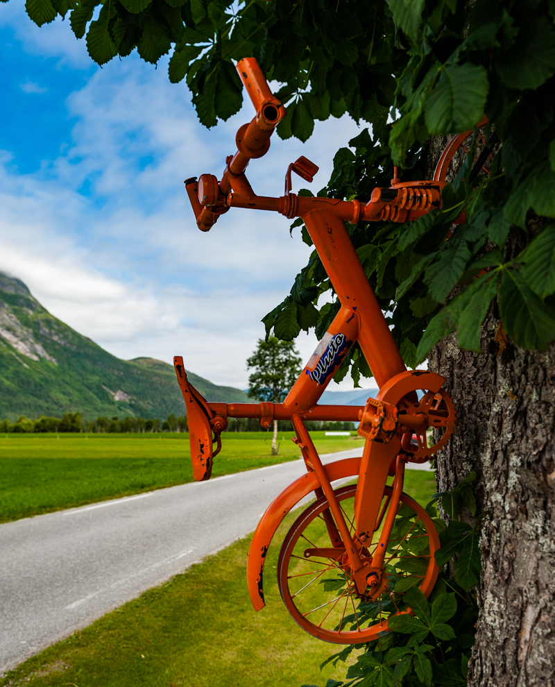 Еще одна зарисовка, не вполне в стереотипах путешествия по Норвегии. Отслужившее свое велосипеды викинги превращают в арт-объекты (а может, в тотемы?). В общем, смотрите сами.