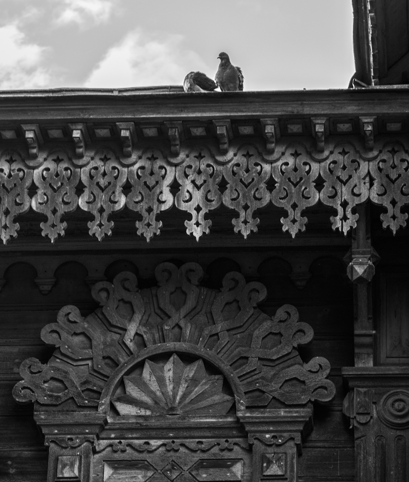 А рядом, многосмысленно сияя золотыми крестами под свинцовыми тучами, стоит еще один храм. Охраняет его мудрый ворон.